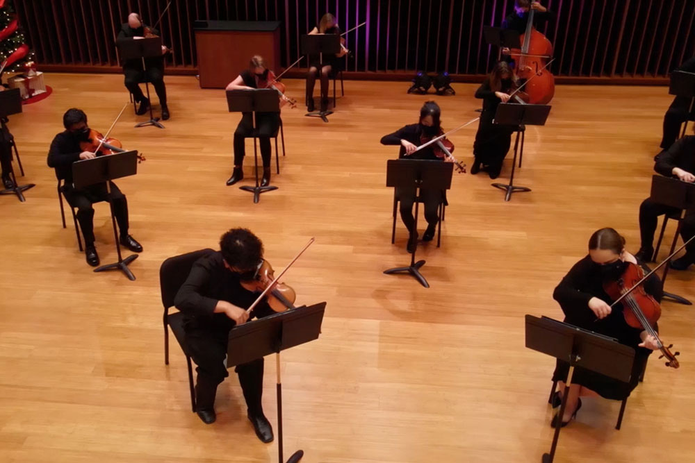 The made-for-TV Christmas concerts featured music produced in the recording studios of Concordia University Irvine’s newest building, the Borland-Manske Center, as well as footage from a 2018 Concordia concert at Segerstrom Hall. The narrated special includes arrangements of favorite Christmas carols by students, soloists, as well as Americana, jazz, and commercial ensembles. Concordia’s choirs, orchestras, and handbells also performed. Filmed on the campus of Concordia Irvine and throughout Orange County, the special includes a Christmas message, as well as a tribute to essential workers.