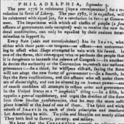 As the Committee of Style moves forward with its work, the Convention continued holding its daily sessions in the East Room of the Pennsylvania State House. For the last week, the weather in Philadelphia has been cool and comfortable, but it is turning warm again and expected to be hot tomorrow and the delegates are anxious to complete their work and go home. Over the weekend, a flurry of letters hit the post roads.