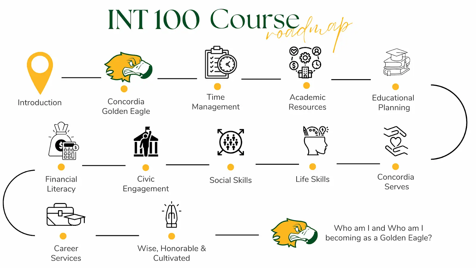 - Successful college transition, including topics of: study skills and habits; academic support resources; wellness skills and plan; ethical decision-making; social, spiritual connection and involvement at Concordia.